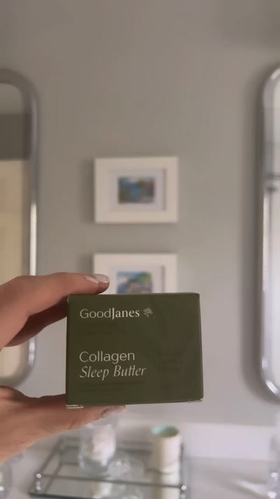 Collagen Sleep Butter with Melatonin is a nightly moisturizer that boosts collagen and repairs skin with Vegan Collagen, Hyaluronic Acid, Echinacea Stem Cells and Squalane.