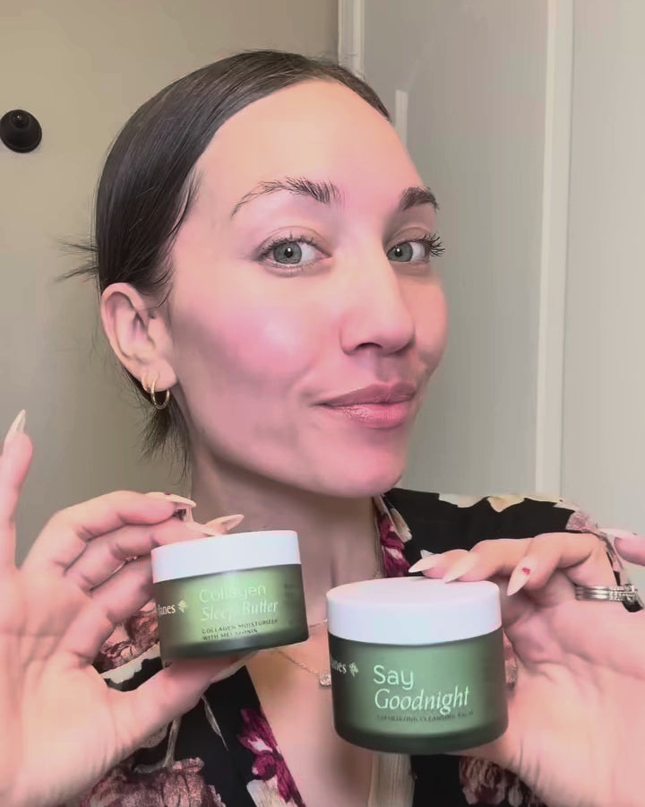 This nighttime skincare duo is the perfect way to end your day—Say Goodnight Exfoliating Cleansing Balm gently exfoliates and hydrates, while Collagen Sleep Butter deeply repairs to boost skin health and radiance overnight.